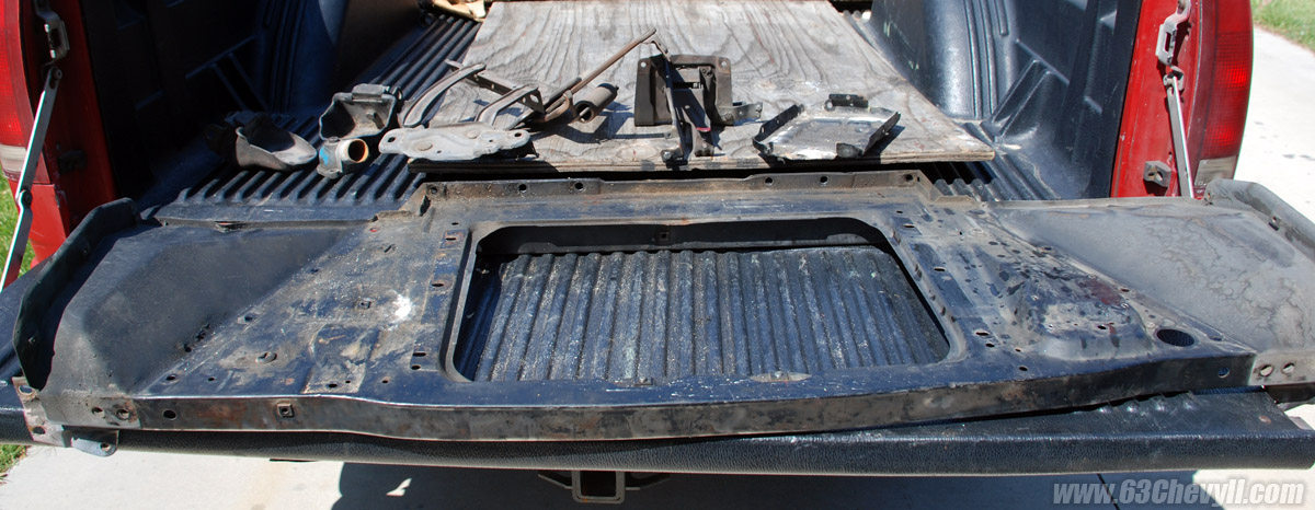 • removed core support • removed wiper motor • prepped engine bay for paint • dropped items off for sandblasting: core support, hood hinges, hood latch assembly, battery tray, engine mounts |