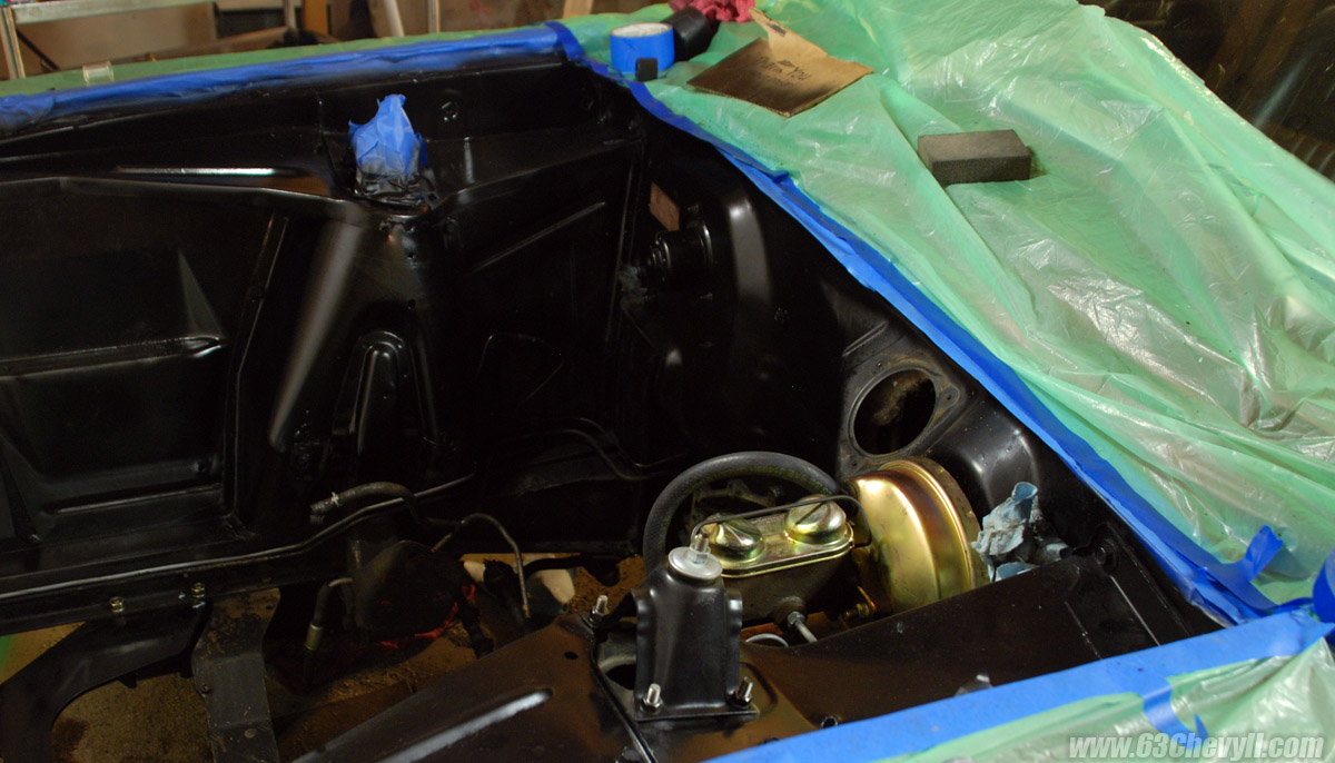 • Painted trunk pan - rustoleum and bedliner • Setup Welder • Engine Bay: prepped and painted Final coat |